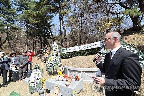 【ソウル聯合ニュース】日本による植民地時代に朝鮮半島の緑化と文化保存に尽力した日本人、浅川巧(1891~1931年)の没後93年の追悼式が2日、韓国・ソウルの公共墓地、忘憂里公園墓地で執り行われた。