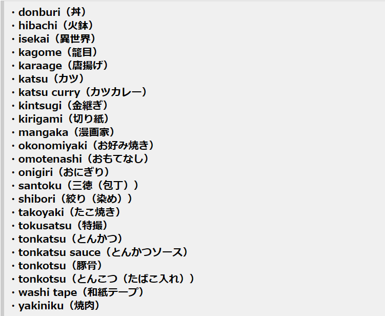 日本語からの借用語として、英語の辞書に単語として登録された