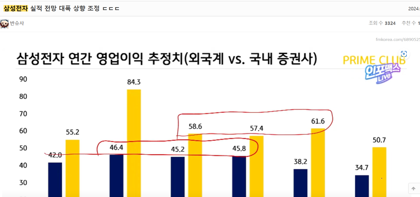 それが朝鮮人。삼성전자 다음주에 증권사들이 실적 전망 상향 리포트를 낼것 어느정도 까지 오를지 기대