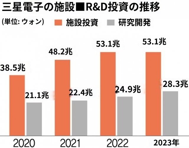 半導体産業は大規模設備投資と研究開発が同時かつ適時に進められなければならない。AIチップやHBMの事例がそうであるように、適正な投資のタイミングを逃せば技術主導権を奪われるだけでなく市場の構図もあっという間にひっくり返されかねない。このため米国と韓国の工場増設の優先順位に対する再検討が必要という指摘が出る。韓国半導体業界関係者は「好況と不況が繰り返されその振れ幅が大きい半導体事業はタイミングの芸術と呼ばれるほど適時の投資決定が重要だ。一瞬にして数十兆ウォンが左右されるだけに必ずしもあらかじめ決めておいたタイムテーブルに合わせて動く必要はない」と話す。両社合わせ45兆ウォン近く貯まっているメモリー半導体在庫資産も負担だ。- 53