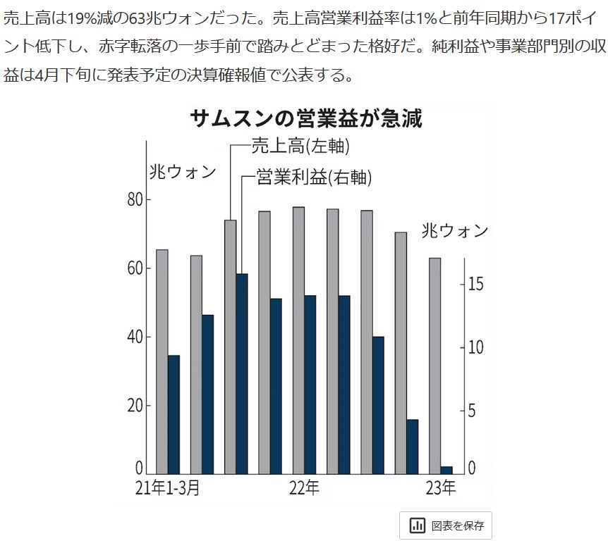 これは去年の業績が悪かったからその反動(笑)別にサムスンに限った話ではない(笑)今年に入ってIT関連の株価が日米で爆上がりしてる事実を見れば分かる事(笑)ただしサムスンやSKハイニクス等韓国産業界はメモリー輸出に頼り過ぎ(笑)半導体製造の課程を考えるとその一番上流に位置する部分の産業はほぼ日本企業が独占状態。チップの原材料となるウエハーや製造装置等。此等企業の株価も爆上がり(笑)
