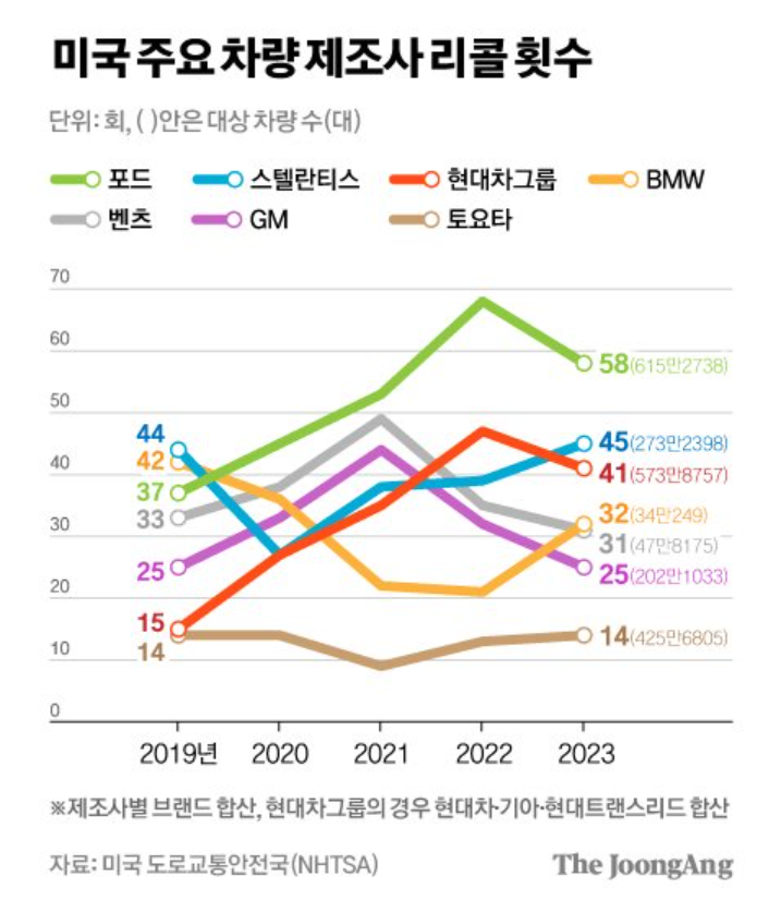 米国主要車両メーカーのリコール数>>9