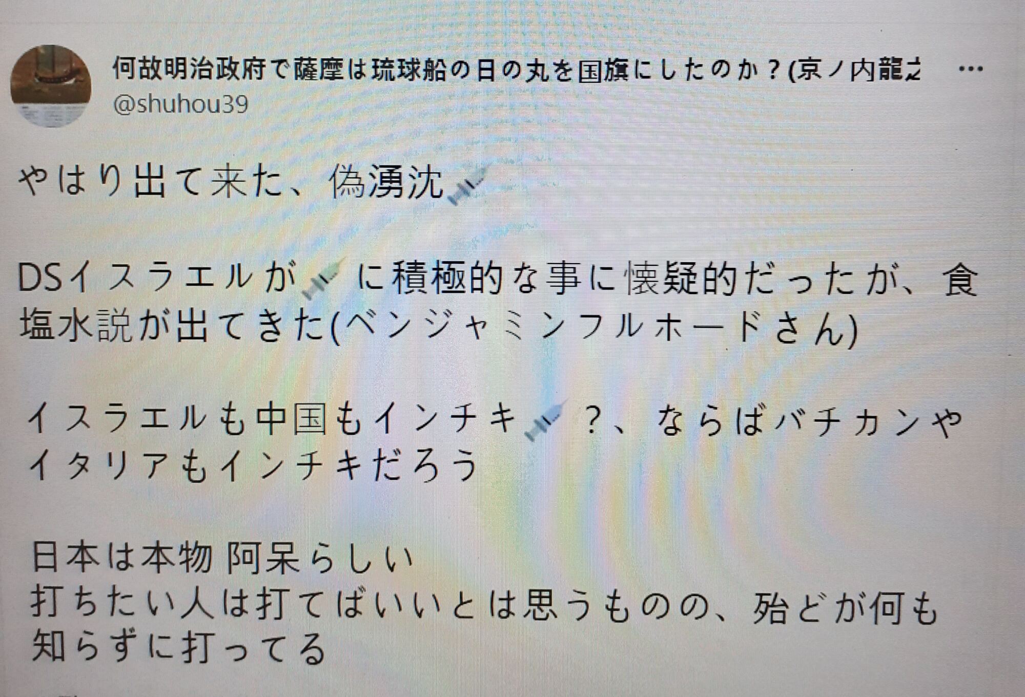 ユダヤ人が毒ワクチンを打ったと扇動するのは