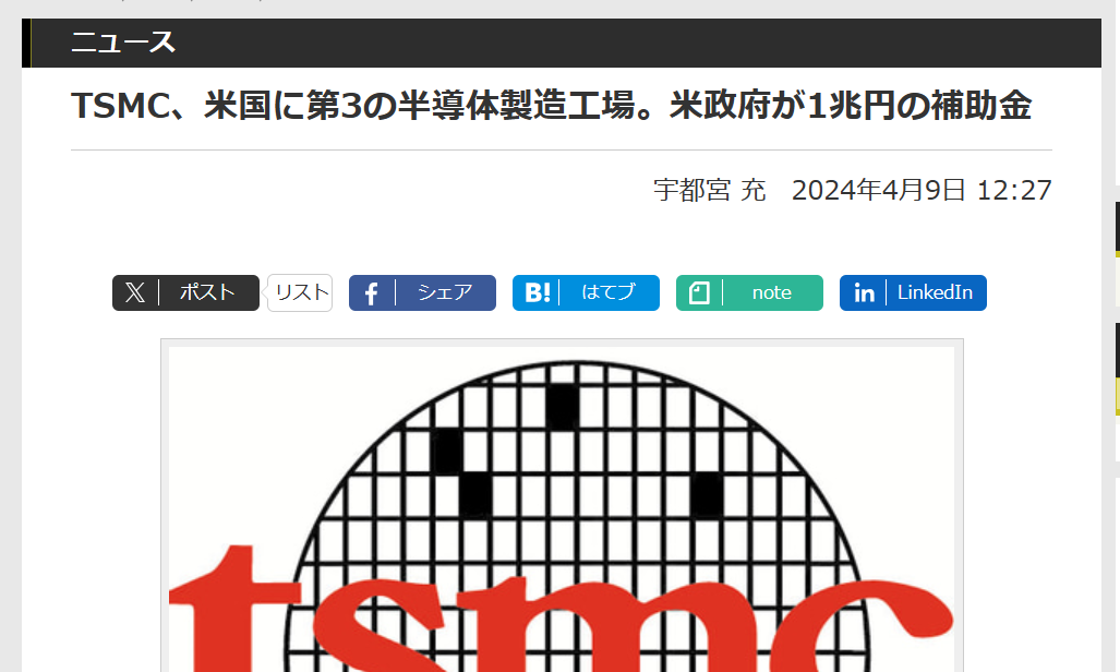 アメリカ国内への半導体企業の投資ならTSMCだろうがラピダスだろうが、投資額に応じて補助金を出す。