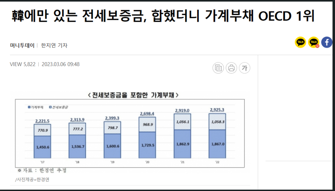 韓国民の家計債務も成長する。