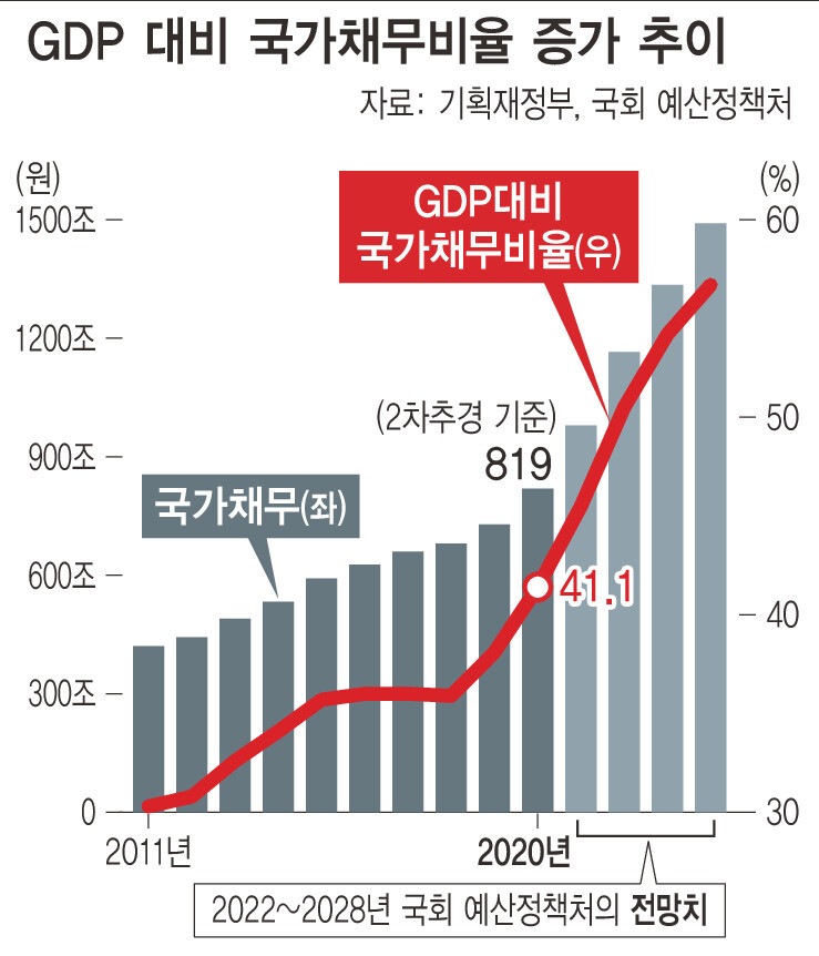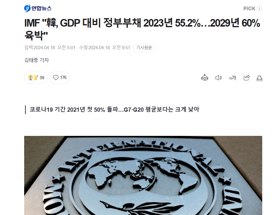 IMF「韓国、2029年にGDP比の政府負債60%迫る」