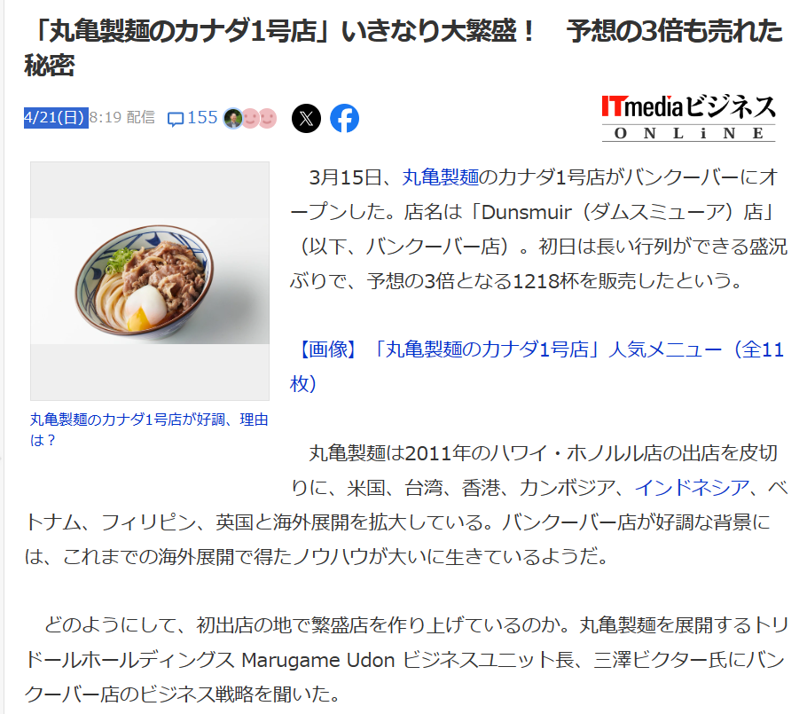「丸亀製麺のカナダ1号店」いきなり大繁盛! 予想の3倍も売れた秘密