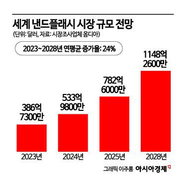 市場調査会社のオムディアによると、世界NAND市場の売上は2023年287億ドルから2028年1148億ドルへと、年平均24%増加する見通しだ。