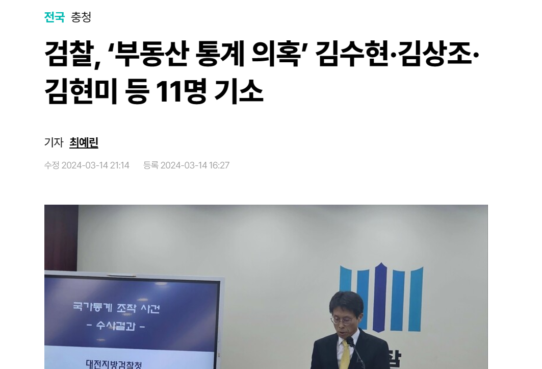 大田地検によると、在宅起訴されたのは文政権下で大統領府の政策室長を務めた金秀顕(キム・スヒョン)被告、同じく政策室長を務めた金尚祖(キム・サンジョ)被告、国土交通部長官を務めた金賢美(キム・ヒョンミ)被告ら11人。