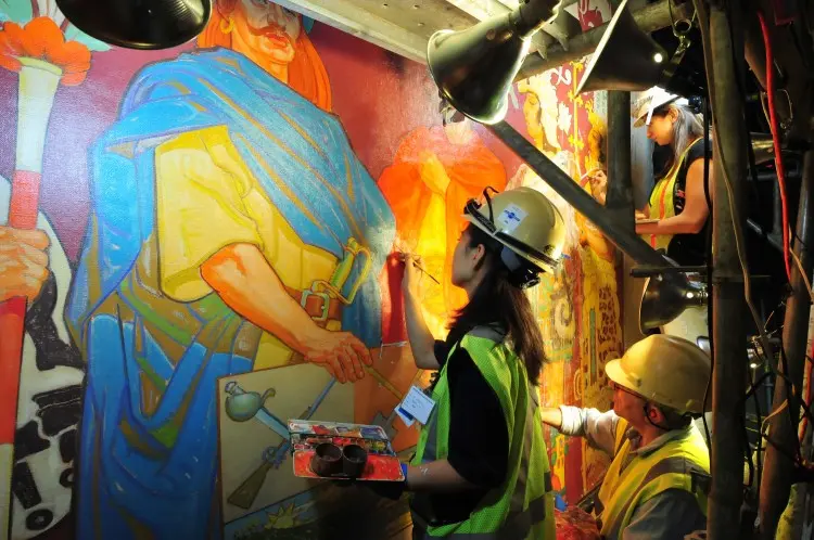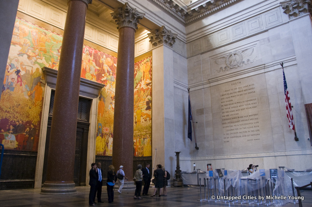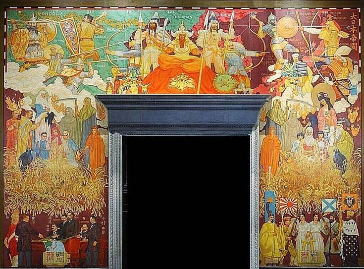 該当壁画は1935年アンドリュー・マッケイ氏が描いたもので、1905年の露日戦争直後、ポーツマス講和会議を斡旋したルーズベルトを表現した。2012年の補修作業後に一般に公開された図で旭日旗について、復旧の過程で描いたのか市民団体の質疑があったが、博物館側は回答しなかった。