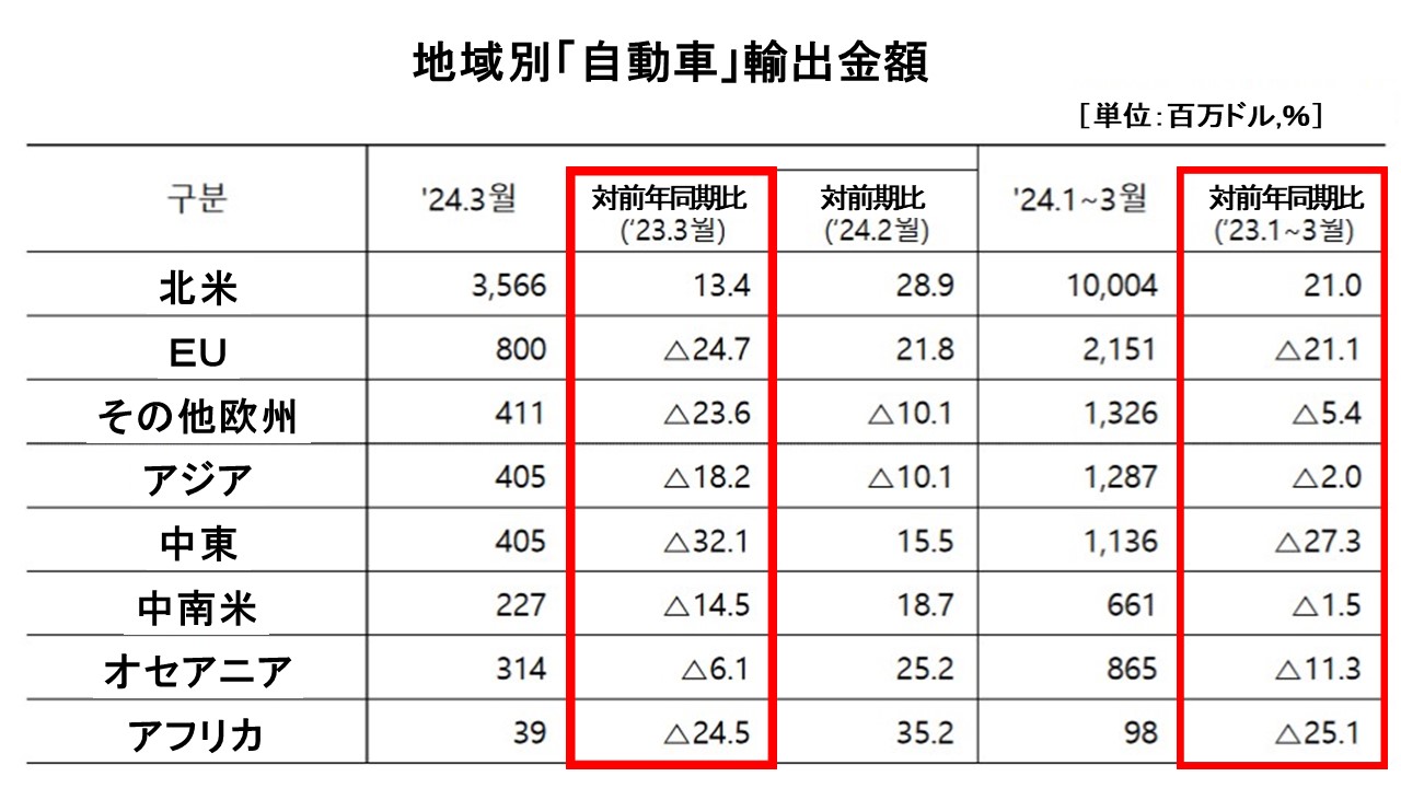 ⇒参照・引用元:『韓国 産業通商資源部』公式サイト「地域別自動車輸出金額」