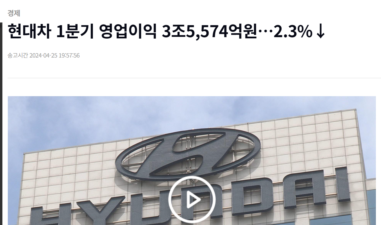 【現代自動車の1~3月期営業益 2.3%減=売上高は同期最高】
