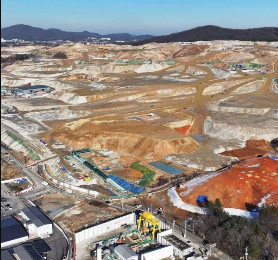 写真のハイニックス龍仁(ヨンイン)、サムスン平沢(ピョンテク)工場予定地も、その先端戦略産業特化団地の一環です。投入された税金のうち何%かは関係者の懐に消えるでしょうけど、韓国はここに国家の命運を賭けたのですから突貫工事で行われていないとおかしい、と言えます。とはいえ、昨年度サムスンは肝心の半導体部門で巨額の赤字を出してしまい、潤沢な設備投資ができません。ですからサムスンの優先順位としては、国内工場より何をおいてもまずアメリカ工場になります。