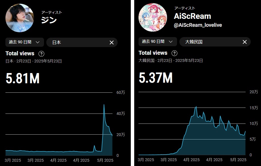 AiScReam は、公開から3ヵ月近くかかって漸くピークに達し、1ヵ月経っても半分以上の再生がある。