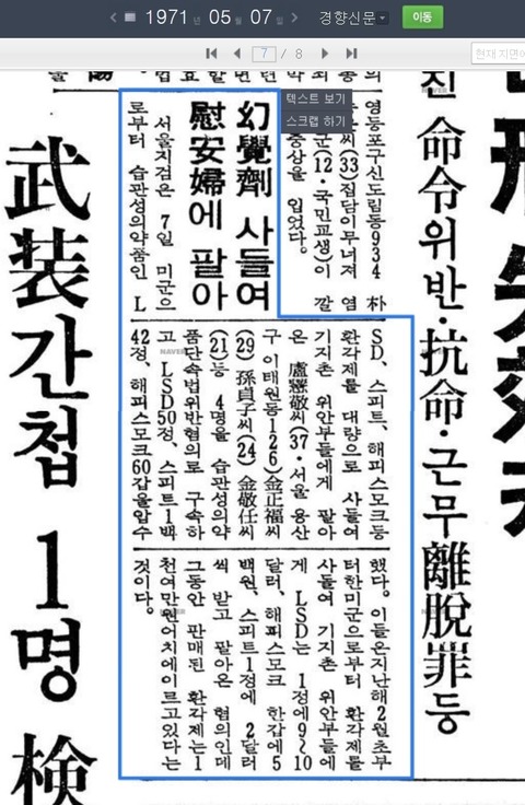 幻覚剤を買い入れ慰安婦に売って 1971.05.07 京郷新聞