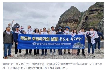 閔炳徳(ミン・ビョンドク)・白恵蓮(ペク・ヘリョン)議員ら韓国野党「共に民主党」京畿道党対日屈辱外交対策委員会の独島守護団17人は先月30日独島を訪れて日本の独島領有権主張を糾弾した。