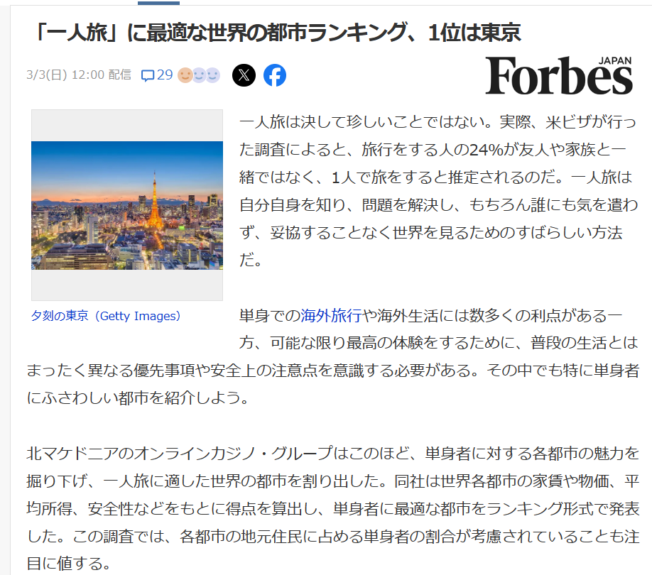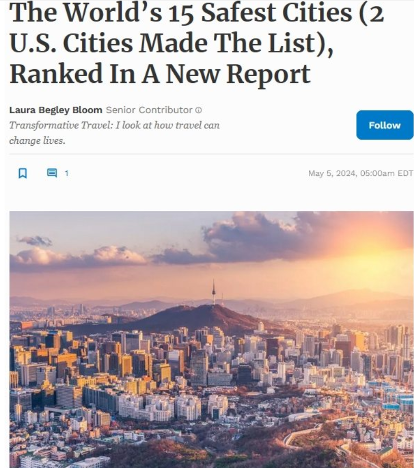 Forbes 선정 세계에서 가장 안전한 도시 1위 서울