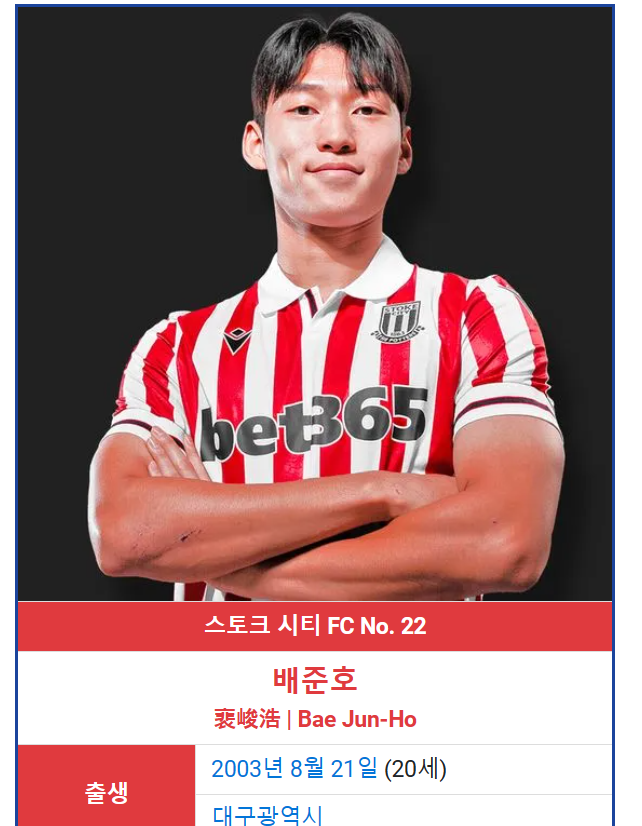 ぺジュノはOMF、年齢は20歳(8月で21歳)、所属チームはストーク