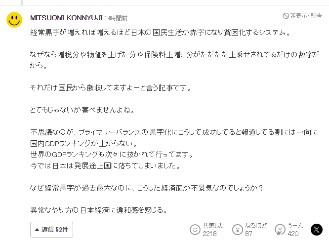 つまり、君が挙げた書き込みをした人間は、基本的な経済に関する知識もない人間。