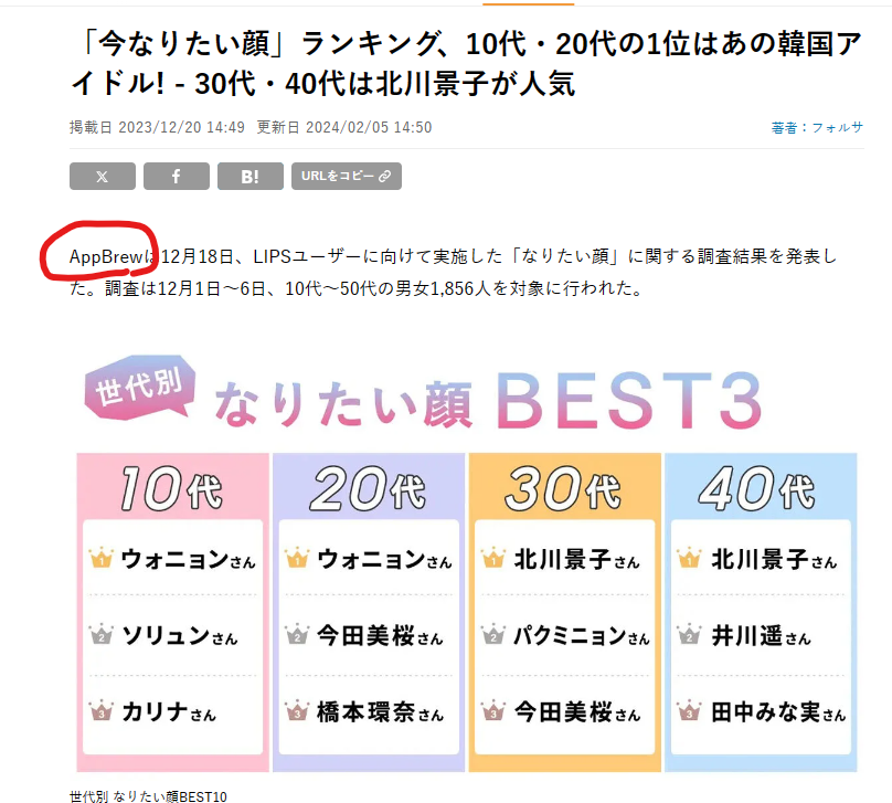 일본 10대 여성이 닮고 싶은 얼굴 1위는 한국 아이돌