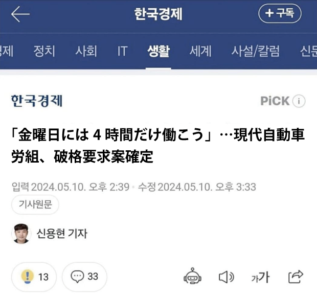 総実労働時間を減らせ・・・といえば聞こえがいいが、韓国の労働者は