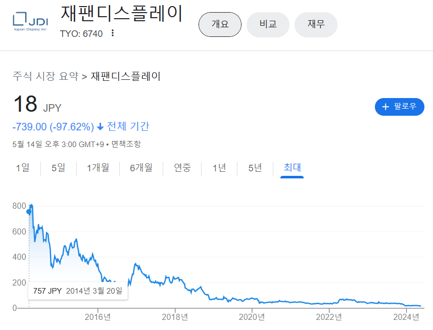 これで、国内でテレビ向けの大型液晶パネルを生産する企業がなくなります。「日の丸液晶」JDI、上場から10年連続赤字 株価は40分の1に