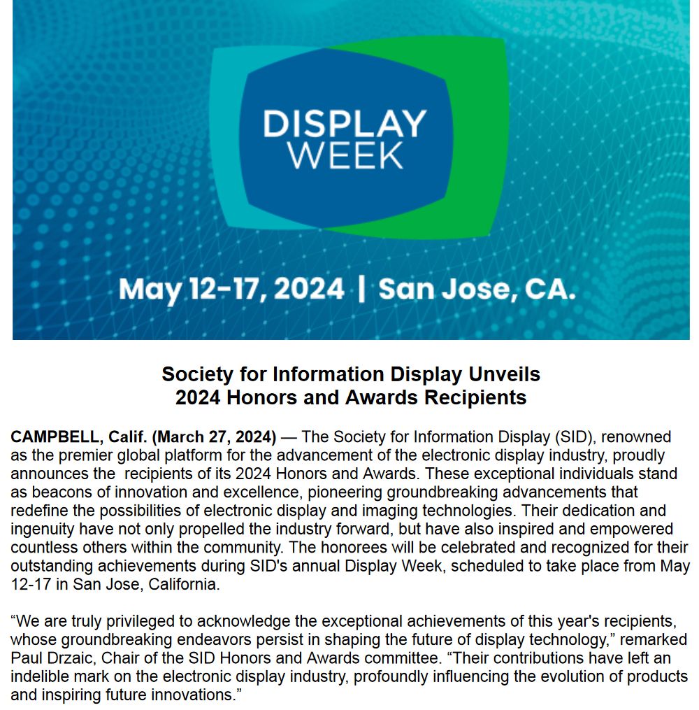 세계최고 화면 기술력의 삼성, 디스플레이 학회에서 우수논문 최다受賞!