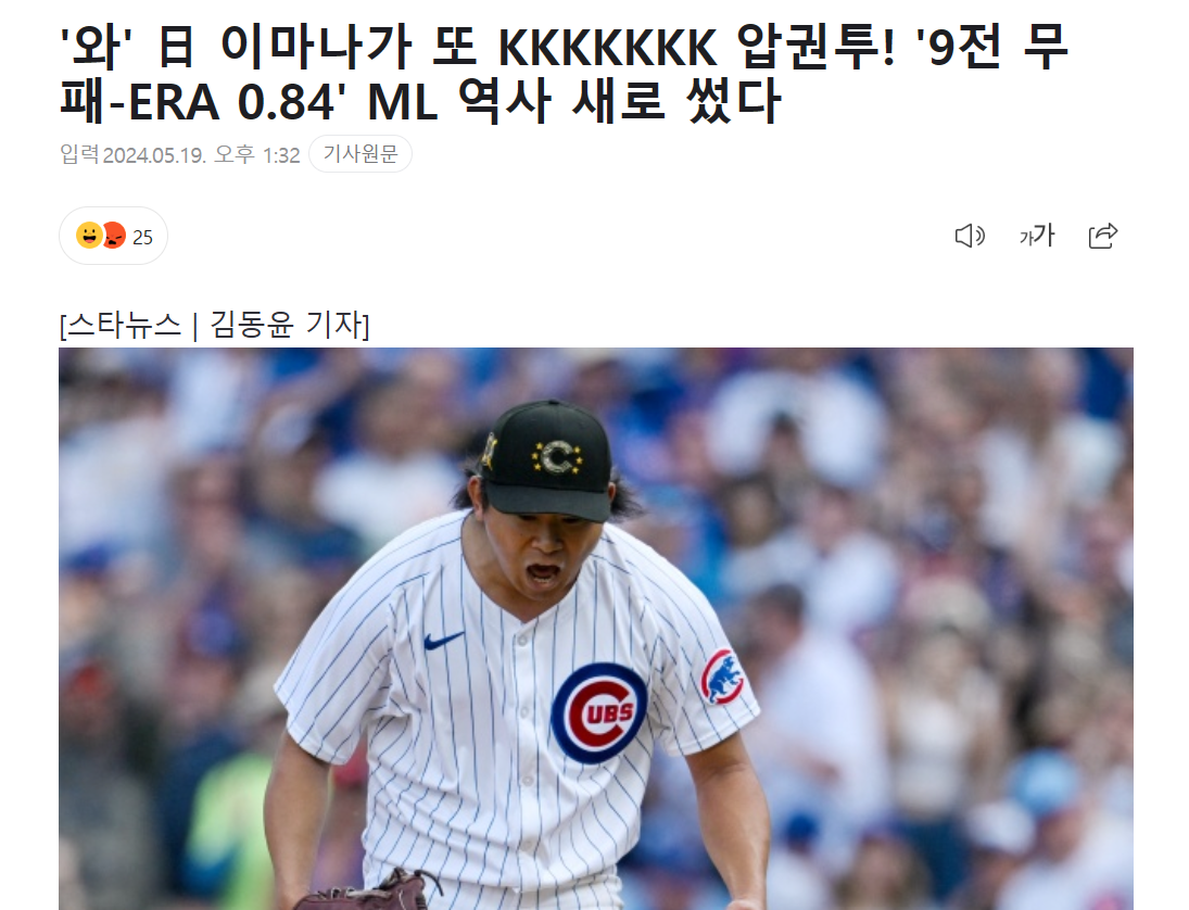 일제강점기에 태어났으면 조선인들을 괴롭히는 놈이었을 것이다「わ~!」日本今永またKKKK圧巻投! 「9戦無敗-ERA0.84」MLの歴史を塗り替えた