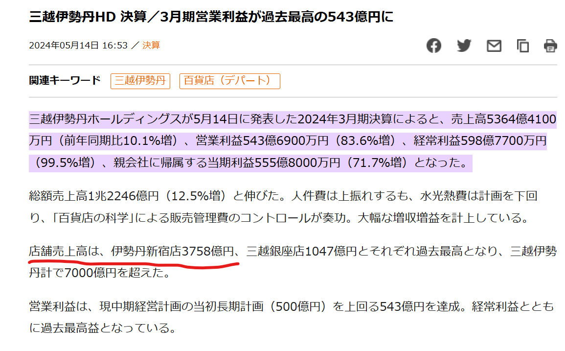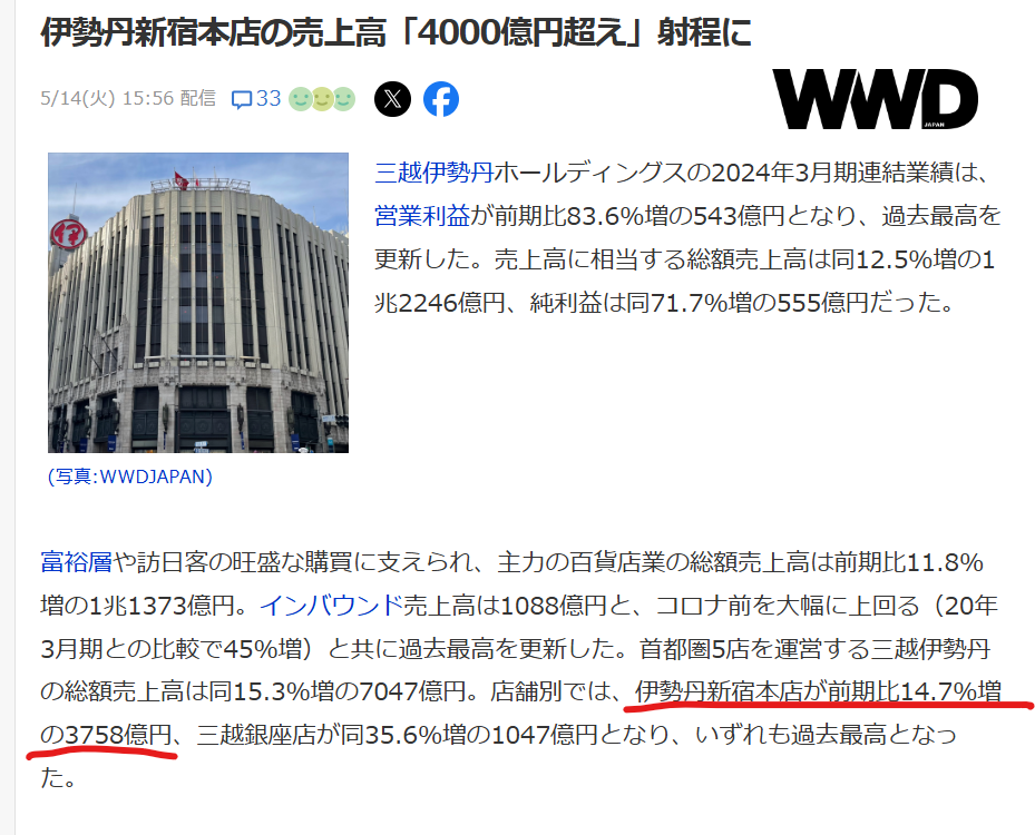 日本全体の百貨店の売上額は…5兆ウォン…ではなく5兆円!!=45兆ウォン。