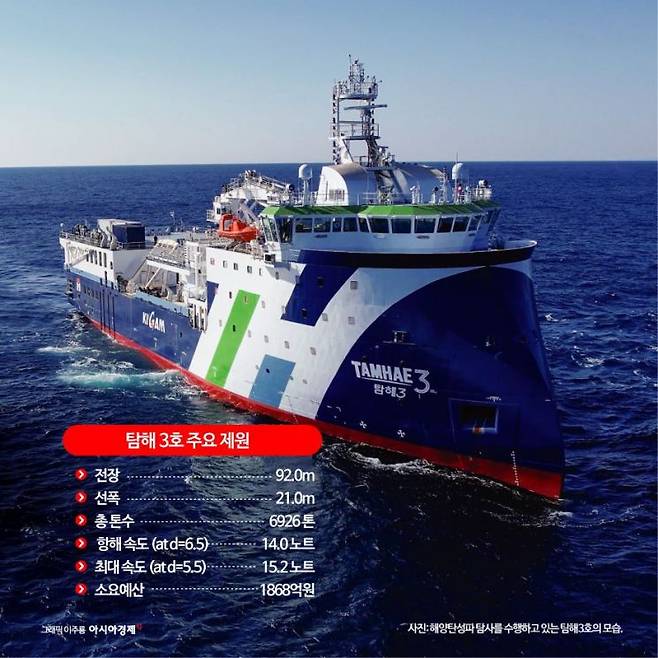 去る23日釜山沖でHJ重工業で航海中だった最先端の3D/4D物理探査研究船、探海3号で記者たちに探偵3号について説明するキム・ビョンヨプ韓国地質資源研究院海底地質エネルギー研究本部長の言葉には強い自信が感じられ負けた。機会だけが与えられれば、朝鮮半島付近の海域はもちろん、全世界の海を力強くヌビル最先端海底探査研究船探海3号を通じて、韓国でも産油国の可能性を確認できるという意味だった。