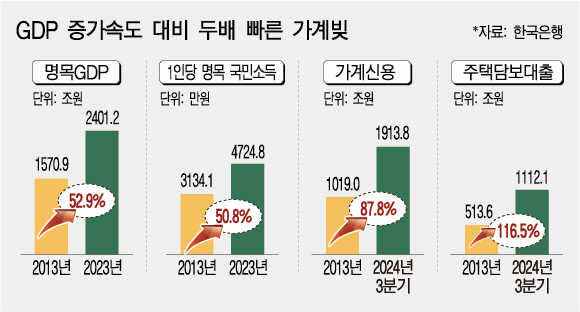 生産と所得に比べて家計借金が急速に増えたことが分かった。特に住宅担保ローン(株談台)の増加速度は、所得に比べて倍以上速く金融安定を害し、マクロ経済循環にも否定的な影響を及ぼすだろうという懸念だ。