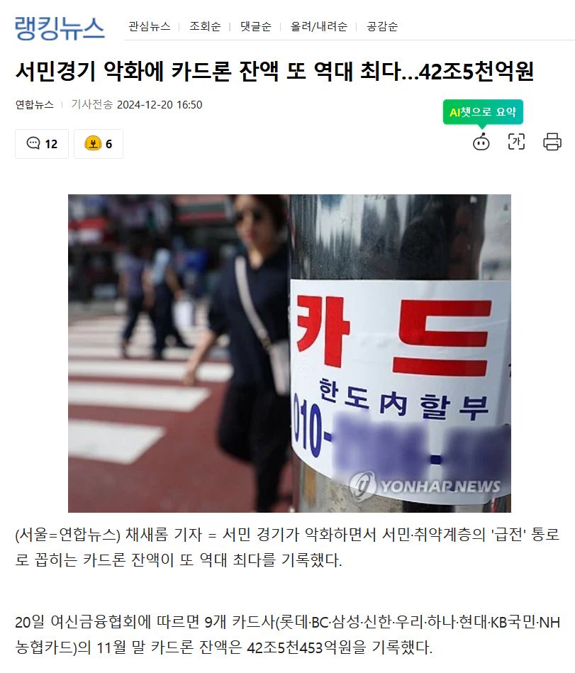 クレジットカードのユーザーが1ヵ月以上返済できなかった延滞金が、2兆ウォンを超えていることが明らかになった。カード加入のハードルを大幅に下げ、2002年から2006年の間に数百万人の信用不良者を量産した「カード大乱事態」に匹敵する規模だ。物価高や金利高の長期化と景気低迷が続き、カードの利用代金を返済できない庶民が急増している。