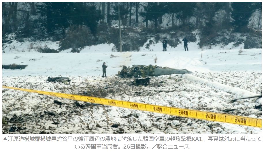 26日の北朝鮮無人機による領空侵犯を受け出撃した韓国空軍の軽攻撃機「KA1」1機が墜落した。