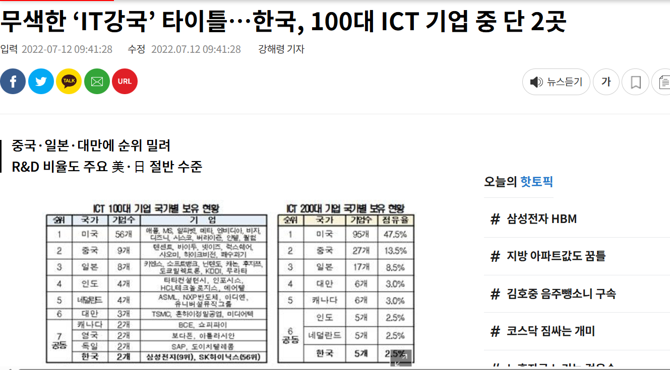 IT強国の韓国、世界100大ICT企業はわずか2社