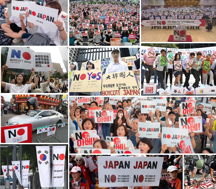 もうね、どいつもこいつもアホ面下げて、中には確信犯もいるだろうけど、大方なぜ「NO JAPAN」や「Boycott Japan」をやっているのか、理解すらしていない思考力と知能が残念な人ばかり。