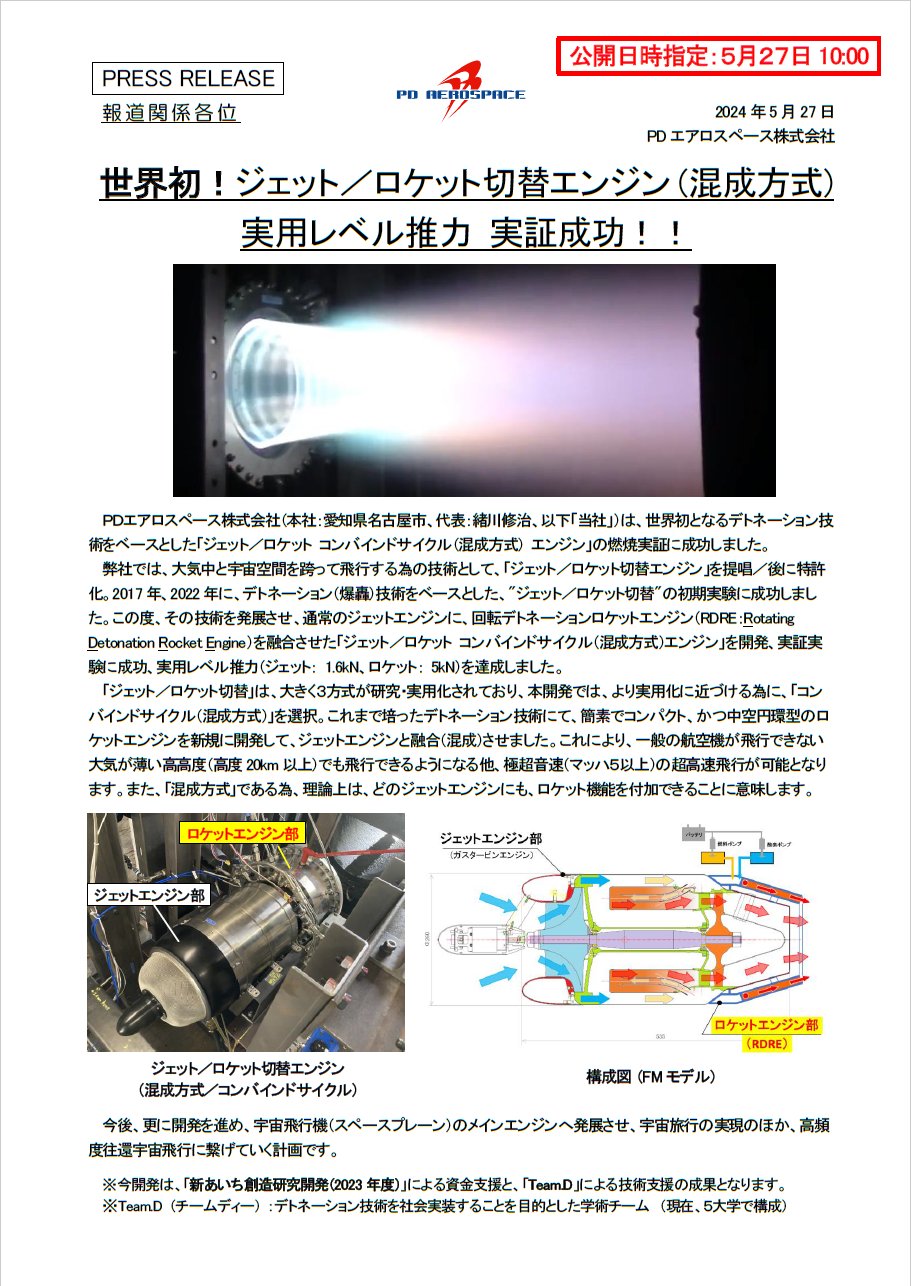 27日に公開されたエンジンは、大気圏中では酸素で燃焼するジェットエンジンに切り替えることができ、燃料を含めた重量が軽くできます。