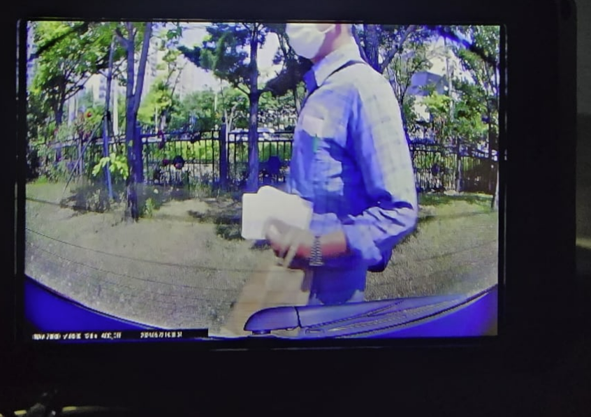 あわせてAさんはこの紙を残していった男性の姿が入ったドライブレコーダーの写真も公開した。写真には帽子にマスクをして顔を隠した男性が紙の束を持って駐車場を歩き回っている様子が写っている。男性の髪の毛が白いところを見ると中年ではないかと推定される。