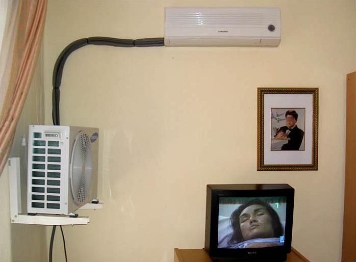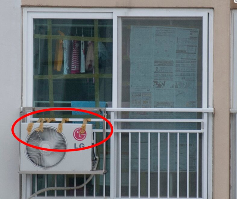 建物の外壁に設置された室外機は、都市の美観を大きく阻害し、墜落などの事故危険もある。 また、夏には室外機が噴き出す熱気で近所の人や通行人に不快感を抱かせてくれて、層間騒音に加えて、室外機から発生する騒音が住民間の紛争を起こすこともある。