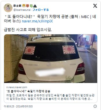 旭日旗をつけた車が韓国の道路を…「この目を疑った、通報はできるのか」