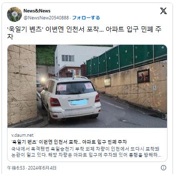 仁川西区(インチョン・ソグ)のマンションの近くにいつも駐車しているという「旭日旗ベンツ」は目撃談が相次いでインターネット上で公憤を買っている。