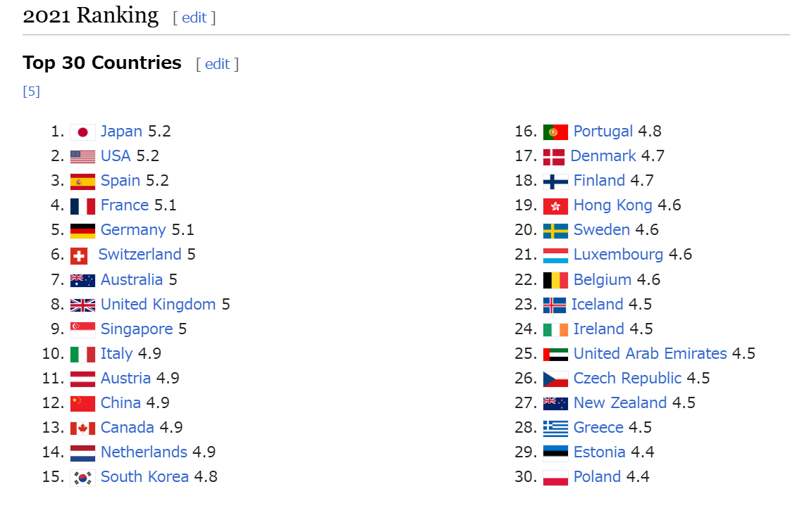 アジアでは他に、中国が8位、シンガポールが13位、韓国が14位、インドネシアが22位