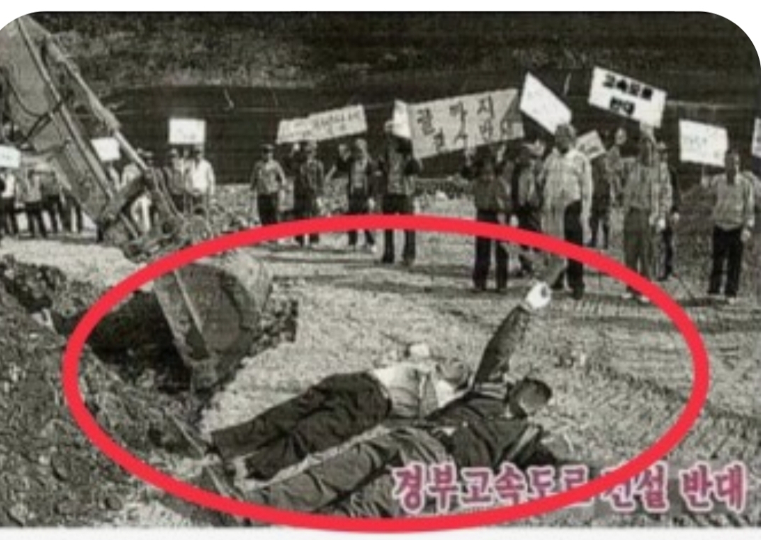 道路で横になって妨害したwwしかし韓国人って本当に文盲で馬鹿だな笑