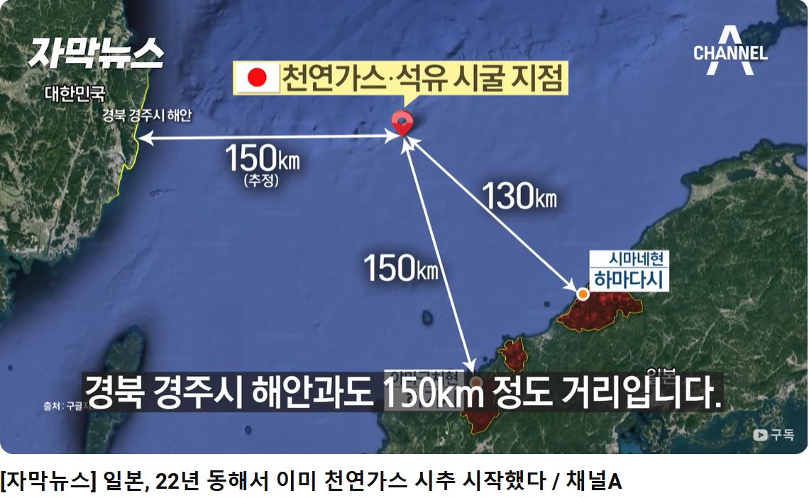 日本の排他的経済水域、EEZ内だと主張していますが慶北慶州市の海岸とも150kmほどの距離です。