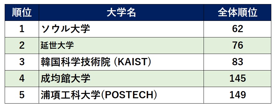 QSの世界大学ランキング(2025)では、韓国の大学としてはソウル大学(31位)に次ぐ53位にランクインしており、第2位だ。東京大学が32位、京都大学が50位、東京工業大学が84位であることを踏まえると、いかに名門であるかわかる。