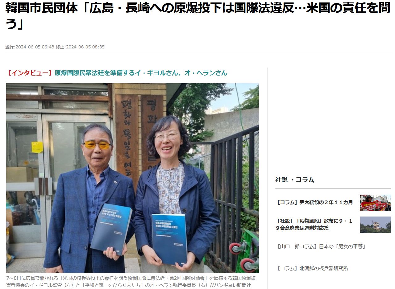 韓国市民団体「広島・長崎への原爆投下は国際法違反…米国の責任を問う」