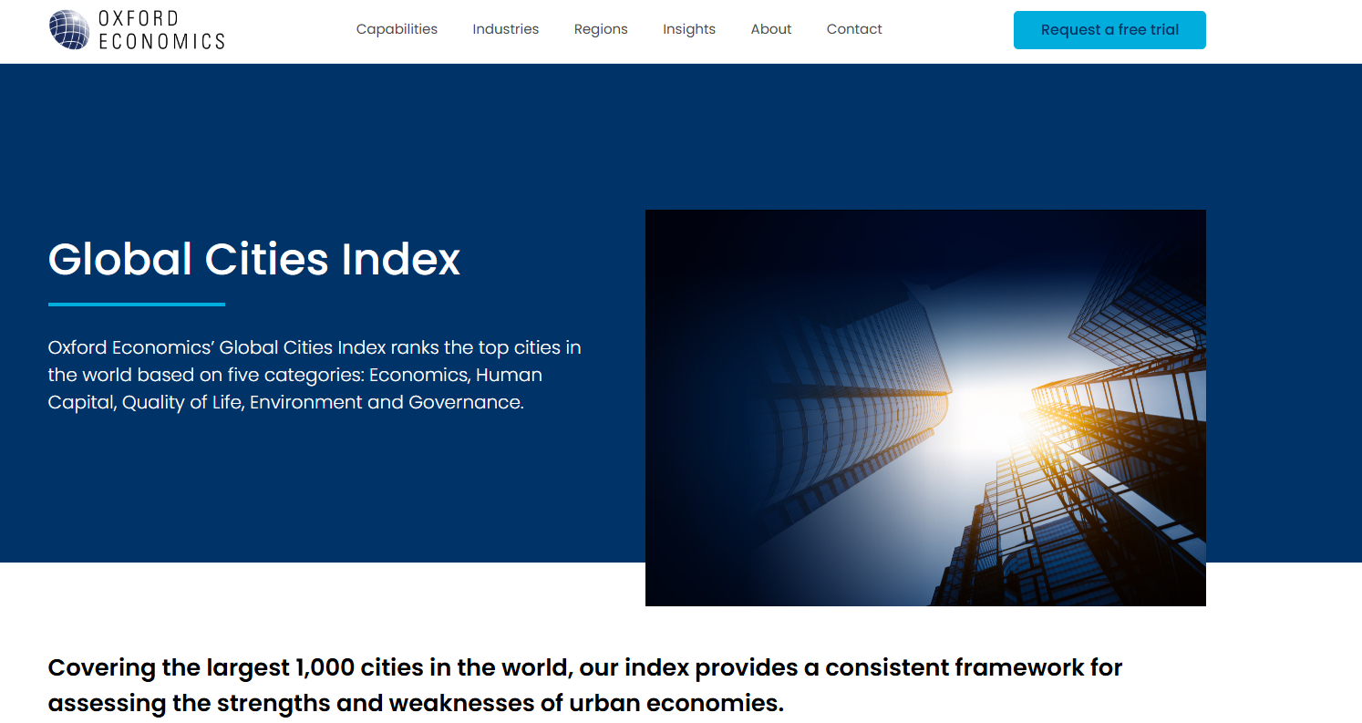 グローバル経済予測や定量分析などを提供する調査研究機関であるオックスフォード・エコノミクスは2024年5月21日、都市指数に基づく新たな世界都市ランキングとして、第1回『グローバル・シティーズ・インデックス』を発表した。