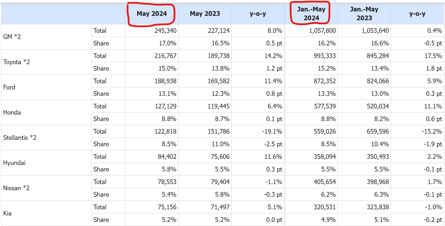 韓国では『現代自動車』『起亜自動車』を合算して、業績を『TOYOTA(トヨタ)』と比較しますが――その『起亜自動車』です。2024年05月の業績が公表されていますが、明らかに失速しています。