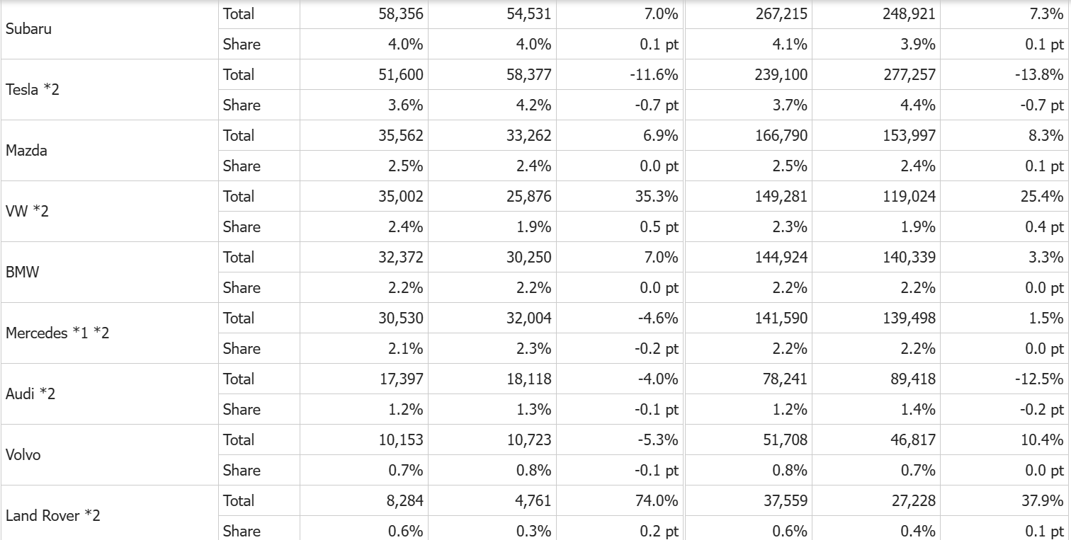 日本車が上位10車種のうち7車種を占めた形だ。