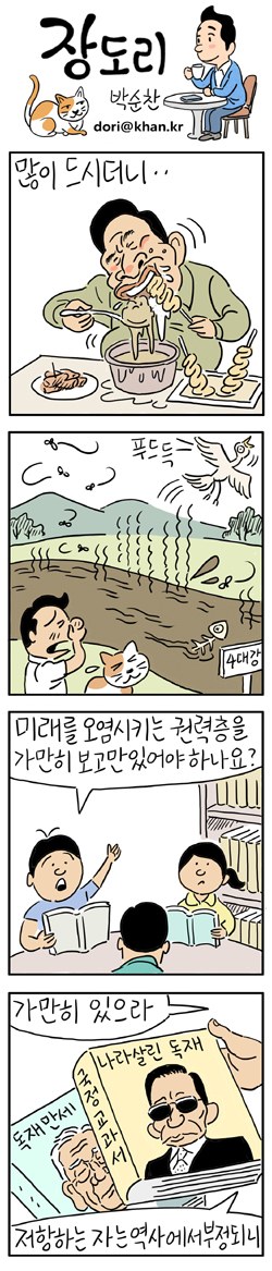 もちろん政治もいいのですが、日本人には韓国の政治はよく分かりません。>9 이번 여름 때 날씨가 특히 혹독했다. 그래서 녹조 현상이 발생한 지 거 4대 강 때문에 문제가 발생했다는 건 잘못된 의견이라 생각한다.