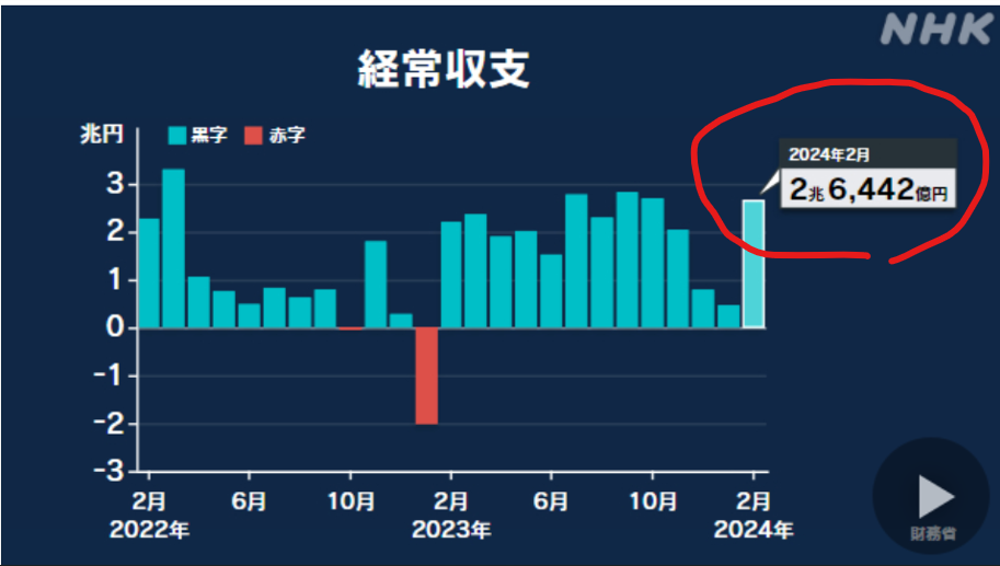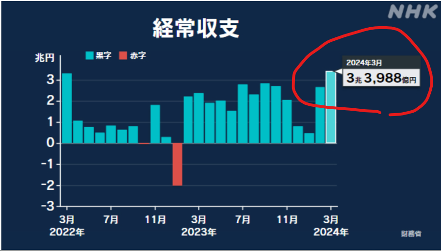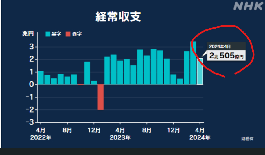 経常収支は2兆505億円の黒字で4月としては過去最大>>1